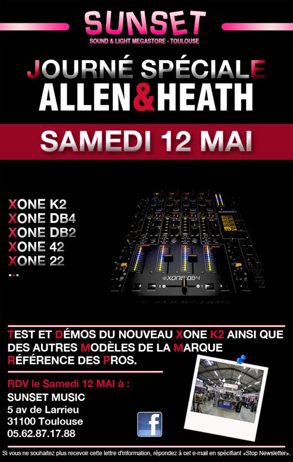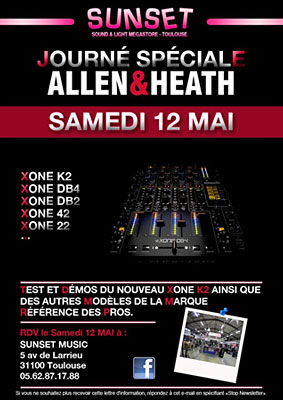 Pour tous ceux qui sont sur la région de Toulouse et qui n'ont pas eu l'occas de monter au MixMove, je vous donne rendez-vous toute l'après-midi le samedi 12 Mai 2012 au magasin Sunset Music 5 Avenue Larrieu à Toulouse. Je répondrai à toutes vos questions concernant Serato et les Rane 57, 68 je ferai des démos des nouvelles Rane 61 et 62 ainsi que du mix vidéo.